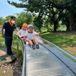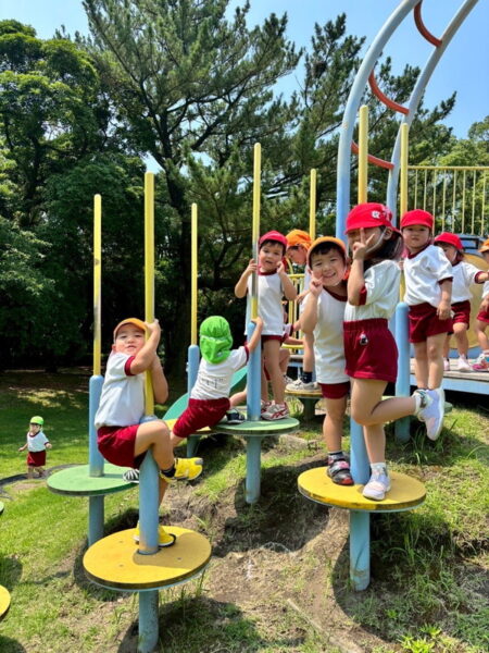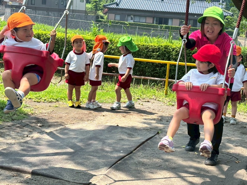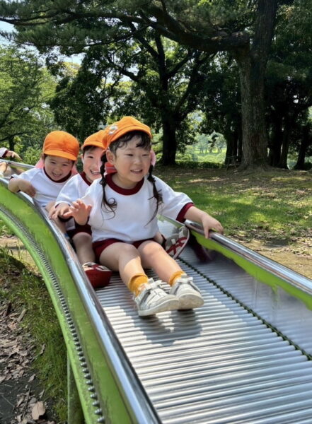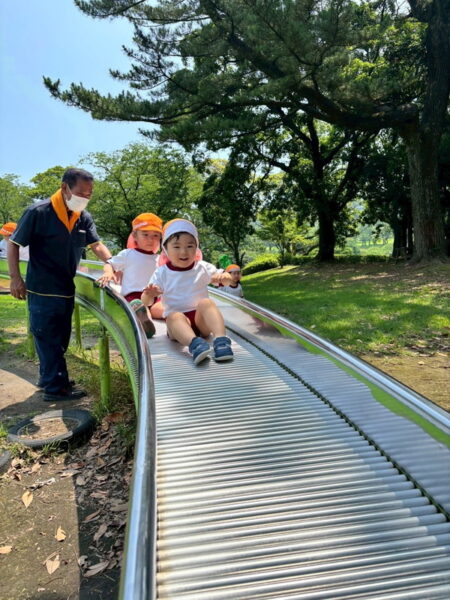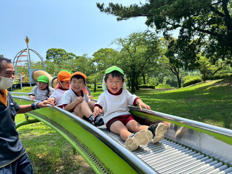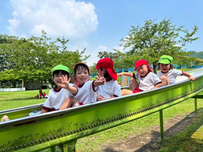 木陰で水筒を飲んだり、休憩をしたり、熱中症対策もしっかりと行いながら、友達や先生と追いかけっこをしたり、遊具で遊んだりして時間いっぱい遊ぶことができました★