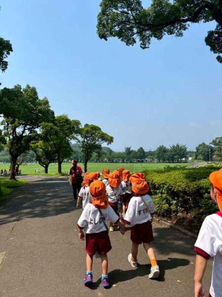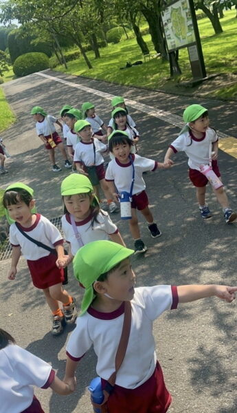 6月30日(月)は、年少組の園外保育があり、みんなで「吉野公園」に出掛けました。