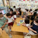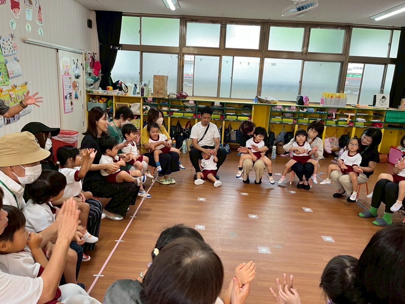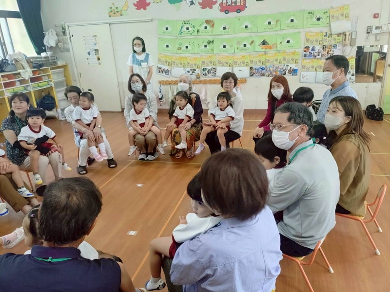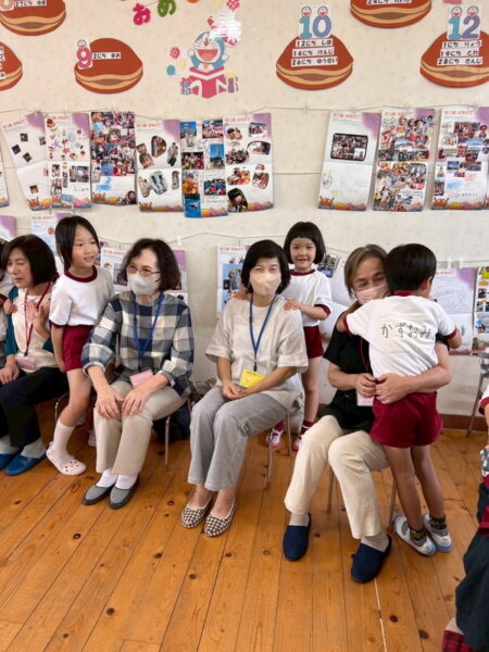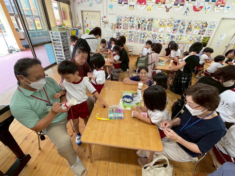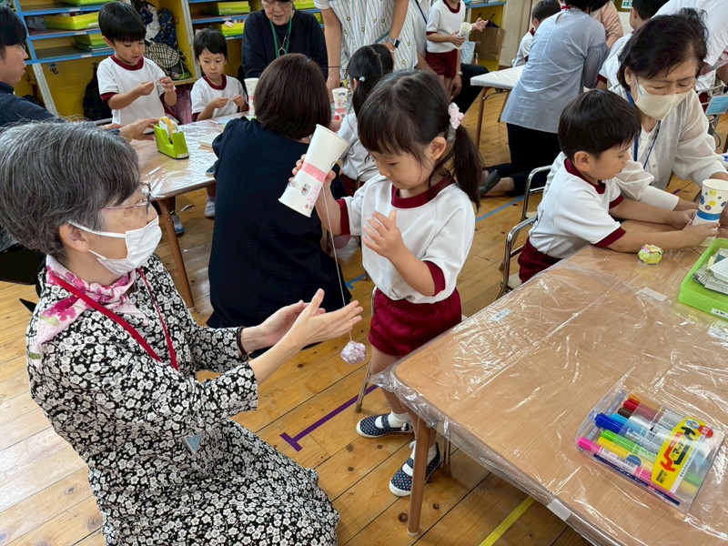 9月15日の敬老の日にちなんで、おじいちゃん、おばあちゃんを幼稚園に招き、普段の子どもたちの様子を参観してもらい、一緒に活動に参加していただきました!