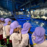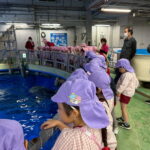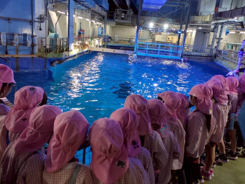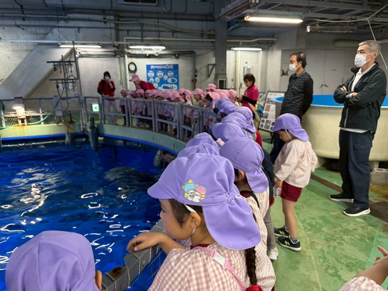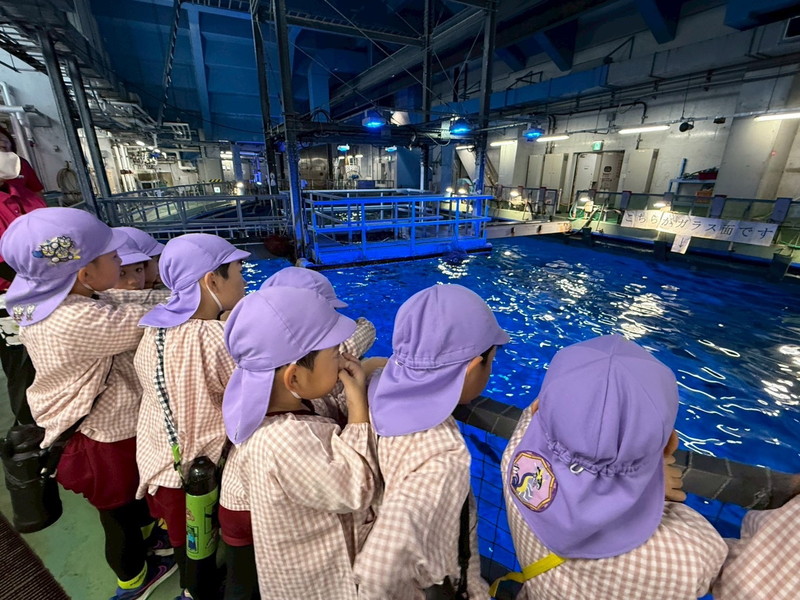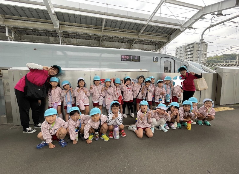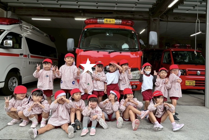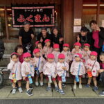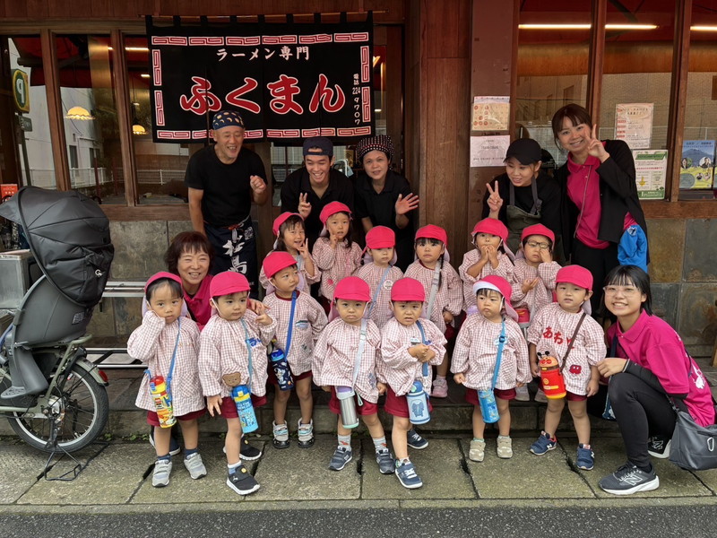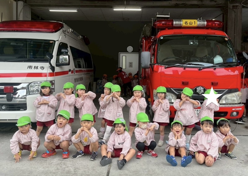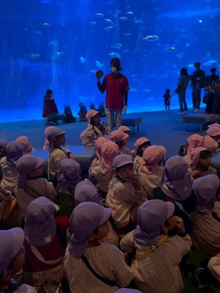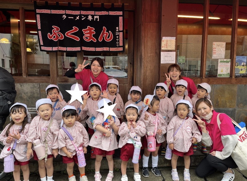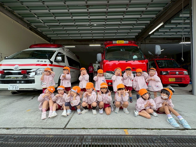 年少少組は天文館にあるラーメン屋さん『ラーメン専門店ふくまん』へ、年少組は消防署南林寺分遣隊へ、年中組はJR九州鹿児島中央駅へ、年長組は鹿児島水族館へでかけ、その場所で働く方々が働く姿を見学させていただき、お仕事についてのお話を聞かせていただきました。