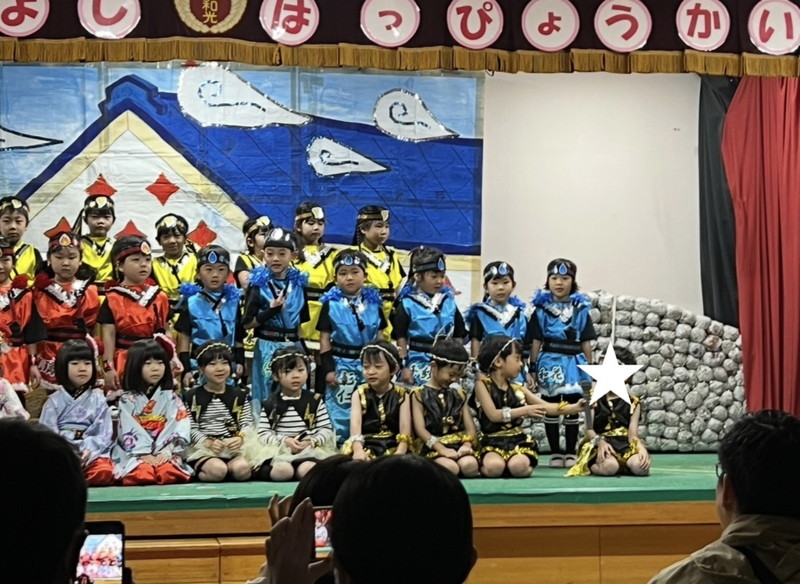 そして、最後は年長組の劇でした!さくら組は「しんらんさま」、ふじ組は「おしゃかさま」の劇を行いました!セリフや振り付けも多く大変でしたが、幼稚園やお家での練習をたくさん頑張った子どもたち!長い劇で苦戦することもありましたが、本番では年長さんらしいかっこいい、頼もしい姿をたくさん見せてくれました!幼稚園生活最後の発表会ですが、最後は自信や達成感に溢れる素敵な表情の子どもたちでした★